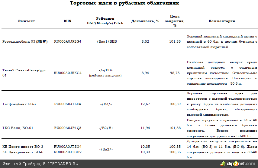 В четверг на российском рублевом рынке спросом пользовались облигации эмитентов с высоким кредитным качеством. При этом ценовой индекс корпоративных облигаций ММВБ просел на 2 пункта, составив 93,38. Ценовой индекс муниципальных облигаций ММВБ вырос на один пункт, достигнув значения 97,42. Спред между ОФЗ 26204 и евробондом Россия 18 вырос на 3 б.п., достигнув 7 б.п.