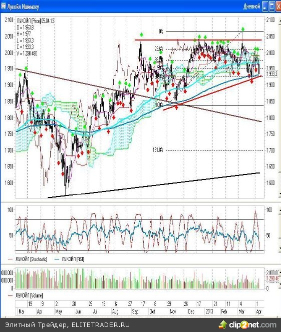 Наиболее рискованные игроки могут покупать данные акции у нижней границы фигуры, выставляя короткий «стоп» за минимум 25 марта, так как те, кто удерживал «лонги» на прошлой неделе, страховали их защитным «стопом», который я советовала расположить в районе 1950 рублей.