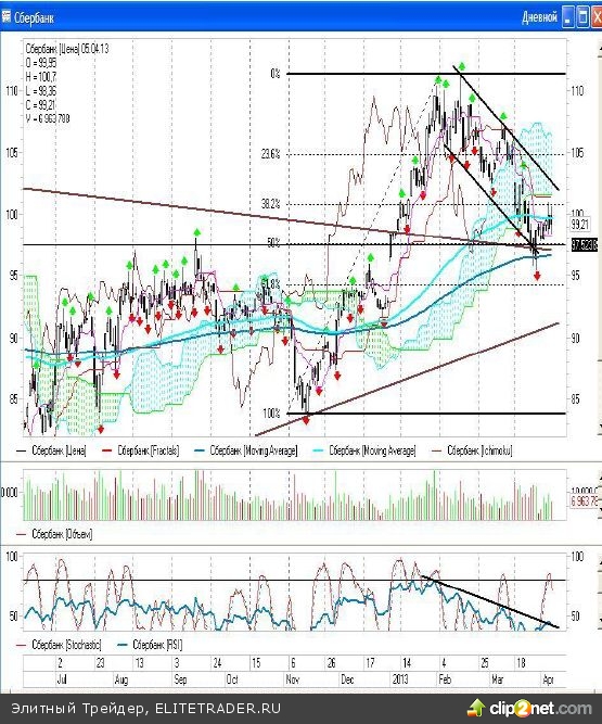 Обратите внимание на стойкость обыкновенных акций «Сбербанка», которые на пятничном падении смогли удержать уровень 99 рублей. 11 апреля (в четверг) у данных акций закрывается реестр и возможно, до этой даты они будут торговаться лучше рынка. Предполагаемый размер дивидендов за 2012 год составляет 2,57 рублей. По привилегированным бумагам – 3,2 рублей.