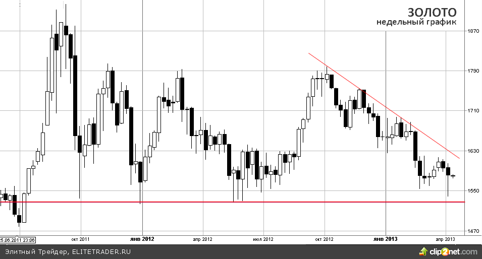 В очередной раз на недельном графике мы видим длинную нижнюю тень свечи, что говорит о больших объемах "на покупку", которые способны как остановить локальный нисходящий тренд, так и начать обратное движение.