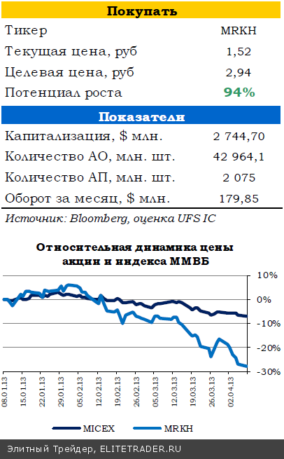 Лучше рынка торговались бумаги Магнита, которому повысили рейтинг, банки также выглядели хорошо на фоне неплохого отчета Сбербанка за 1К13 по РСБУ. Хуже рынка были бумаги ФСК ЕЭС из-за опубликованных оценок для объединения сетей, которые больше благоволят Холдингу МРСК. Хуже рынка также были угольные компании, из-за роста напряженности вокруг Северной Кореи.