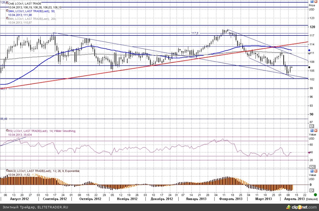 Кроме того в пользу роста сырьевых товаров играл и фактор дешевеющего доллара. В итоге общая картина выглядит таким образом, что котировки Brent в данный момент отскакивают от нижней границы среднесрочного падающего канала. Ближайший ключевой уровень сопротивления проходит в районе $109,5-110 за баррель.
