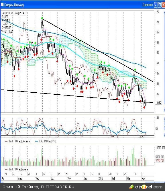 По итогам торгов вторника акции «Газпрома» подорожали на 1,09% до отметки 130,42 рублей. Результат, конечно, не самый впечатляющий, но для этих бумаг и это неплохо.