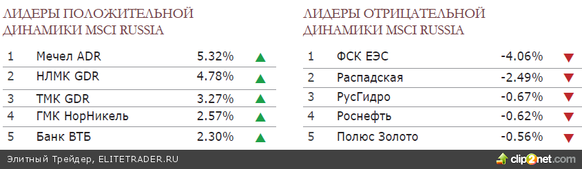 Сильнее рынка также торговались акции «Сбербанка»-ао (SBER RM, +2.02%), ВТБ (VTBR RM, +2.34%), «ЛУКОЙЛ» (LKOH RM, +2.14%), «Мегафон» (MFON RM, +4.36%), ВСМПО (VSMO RM, +4.33%).
