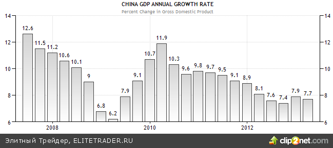 Замедление темпов роста экономики Поднебесной наряду со снижением прогнозов МВФ по экономике США, сохранением проблем в Европе и непредсказуемостью результатов денежно-кредитной рестрикции в Японии свидетельствует о том, что эйфория инвесторов по поводу восстановления мирового хозяйства была преждевременной.
