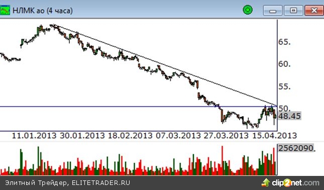 Котировки по-прежнему снижаются в рамках четырехмесячного нисходящего тренда. Однако, стоит отметить возрастание объема торгов и попыток покупателей изменить текущую тенденцию. В последнем откате от тренда котировки не показали нового минимума. Технически пробой отметки 50.50 рублей станет завершением текущего даун тренда и позволит покупателям несколько отыграть утерянные ранее позиции.