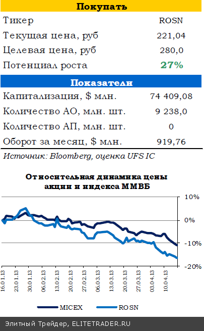 В то же время, рейтинговые агентства, прежде обеспокоенные резким ростом долга компании, похоже, «успокоились», решив, что в конечном итоге приобретение ТНК-ВР было верным решением. Вчера агентство Standard & Poor's повысило долгосрочный кредитный рейтинг Роснефти с "BBB-" до "BBB" со "стабильным" прогнозом. Эта новость может поддержать бумагу и нивелировать потенциальный негатив.