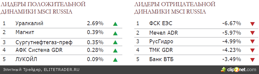 “Начали за здравие, кончили за упокой”. Вчера на открытии российский фондовый рынок предпринял попытку отскока наверх. Гэп на открытии по индексу РТС составил 0.6%. Однако рост был кратковременным – в дальнейшем в течение дня мы наблюдали снижение рынка, усилившееся под конец сессии. Негативную реакцию вызвала отрицательная динамика на европейских площадках, продолжающееся снижение нефти и слухи, что Дмитрий Медведев может отправить в отставку Кабинет Министров. По итогам дня индекс РТС упал на 2.1% до 1327.9 пунктов, а индекс ММВБ - на 1.22% до 1335.9 пунктов. Это новый годовой минимум. Более слабая динамика индекса РТС объясняется укреплением доллара к рублю на 60 копеек. Слабее рынка смотрелся энергетический сектор. Акции «Холдинга МРСК», «ФСК ЕЭС», «РусГидро», «Интер РАО» вчера упали на 5-7% - дна снижения этих бумаг пока не видно. Из “голубых фишек” в лидерах снижения оказались акции ВТБ (VTBR RM, -3.9%) и «Роснефти» (ROSN RM, -2.3%). Лучше рынка выглядели «Уралкалий» (URKA RM, +2.6%) и «ЛУКОЙЛ» (LKOH RM, +0.1%).