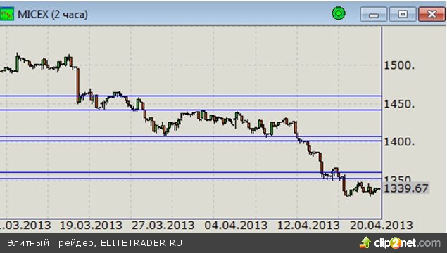 Продолжается краткосрочная консолидация в рамках диапазона 1325-1360 пунктов. Внешний фон на открытии рынка будет способствовать движению цен в район его верхней границы, которая будет выступать сопротивлением для покупателей. Учитывая общую нисходящую тенденцию, отбой от верхней границы диапазона впоследствии может стать отправной точкой к новой волне снижения с обновлением минимумов года. Если же индексу удастся закрепиться выше, то ему вполне будет по силам подняться в район отметки 1400 пунктов.