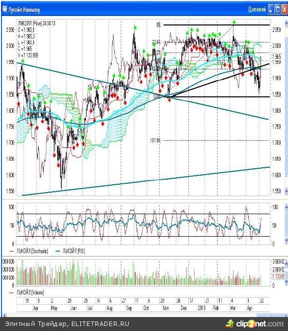Акции «Лукойла» по итогам вчерашнего дня также показали впечатляющий рост (+3,47%) и достигли отметки 1965,3 рублей.