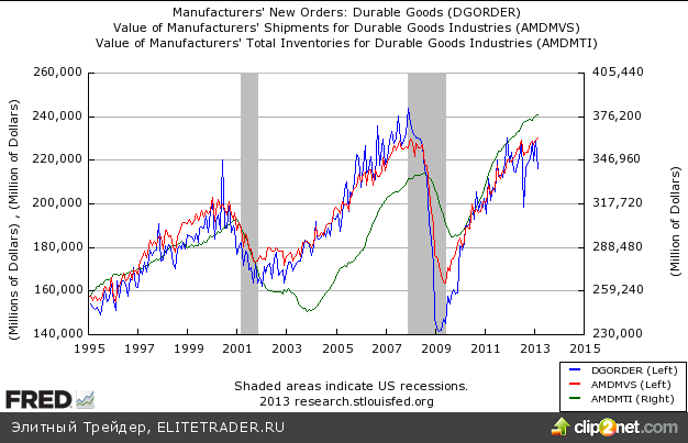 Давление на рисковые активы оказала обнародованная в среду статистика по заказам на товары длительного пользования, которые в марте сократились на 5,7% или на $13,1 млрд. до $216,3 млрд. притом, что аналитики ожидали в два раза меньшего снижения на 2,8%. Февральское значение было пересмотрено в сторону ухудшения с 5,6% до 4,3%, то есть в целом отчет указал на снижение показателя почти на 7%. Без учета транспорта заказы сократились на 1,4%. В то же время поставки и запасы выросли до рекордных уровней $230 млрд. и до $377,2 млрд. соответственно, и тревогу скорее стоит бить после снижения поставок.
