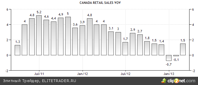 Динамика розничных продаж в Канаде, %