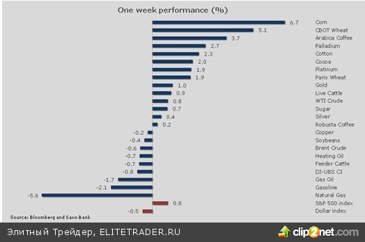 Решение Европейского центрального банка понизить процентную ставку до исторического минимума и решение Федеральной резервной системы США сохранить условия программы по выкупу активов стали главными поддерживающими факторами на этой неделе перед выходом ежемесячного отчета о занятости в США, запланированного на пятницу. Ранее на этой неделе были опубликованы данные о производственном индексе PMI в Китае, которые не оправдали прогнозов аналитиков, а также еженедельный отчет, свидетельствовавший о рекордном приросте запасов нефти в США – оба эти события взбудоражили рынки, по крайней мере, на какое-то время. В сельскохозяйственном секторе под влиянием влажной и прохладной погоды на Среднем Западе США поднялись цены на ключевые культуры, особенно кукурузу и пшеницу, так как процесс посева проходит со значительным отставанием от нормы.