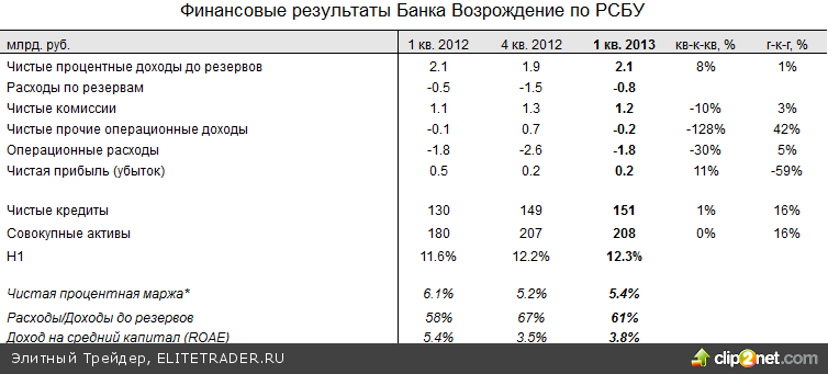 Событие. На прошлой неделе Банк Возрождение опубликовал отчетность по РСБУ за 1-ый кв. 2013 года.