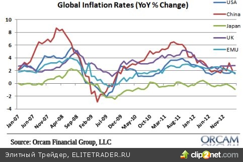 Действительно, в последние годы темпы инфляции замедляются, при этом в этом списке лидирует Япония, которая страдает от дефляции на уровне 0.9%, а Великобритания возглавляет его с ростом цен на 2.8%. Pragcap.com