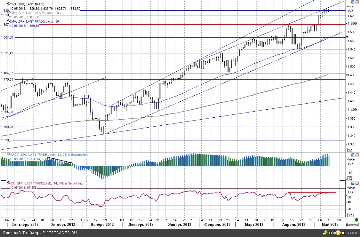 В данный момент фьючерсный контракт на SP500 торгуется с понижением на 0,26% около отметки 1625п.
