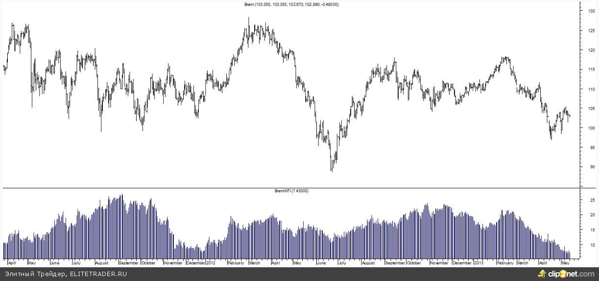 Публикация позитивных данных по ВВП Германии и еврозоны способна привести к некоторому росту показателя, однако это не изменит существующей тенденции и может быть использовано для формирования комбинированной стратегии продажи Brent и покупки WTI.
