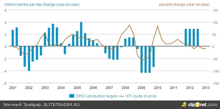 Динамика производства нефти странами ОПЕК и изменение цен на рынке нефти