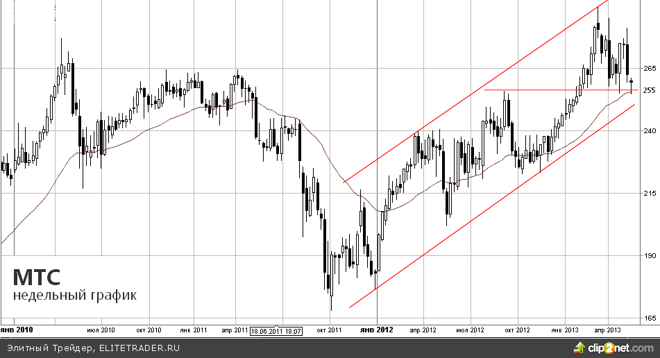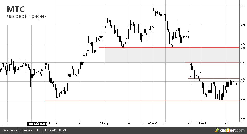 В нашем предыдущем обзоре по МТС (начало апреля) мы предположили повторный тест зоны 255 +/-, поэтому открытые после формирования фигуры «Флаг» короткие позиции дали небольшую прибыль.