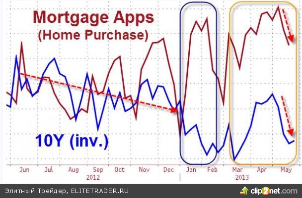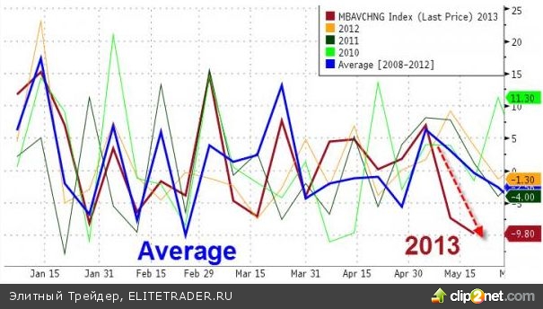 Число заявок на ипотеку в США за последние 2 недели упало на максимум за этот год. Последние хорошие данные по рынку недвижимости не соответствуют реальным настроениям американцев. Этот сектор по-прежнему является слабым звеном американской экономики, и данные по заявкам по ипотеке подтверждают это – последний двухнедельный показатель оказался худшим с начала кризиса. Zerohedge.com