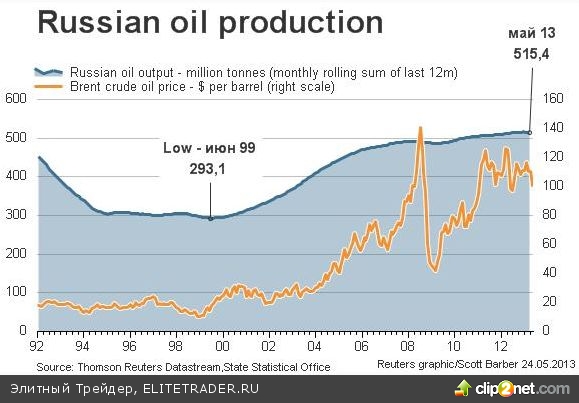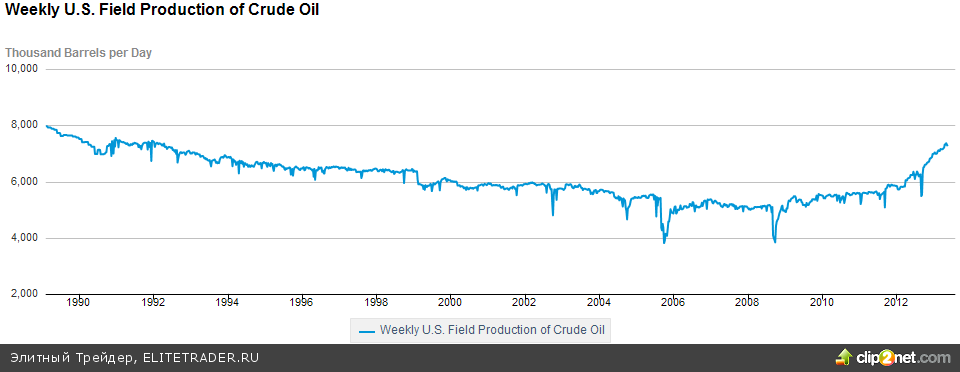 Если вспоминать о добыче внутри страны, то согласно опубликованной статистике поступательный рост производства нефти замедлился. Уже вторую неделю подряд снижается показатель ежедневно добываемой нефти. Тем не менее, общая картина и тренд все-таки остаются прежними, ведь добыча все также находится на максимальных уровнях с 1992 года. (7,26 млн. барр в день.)