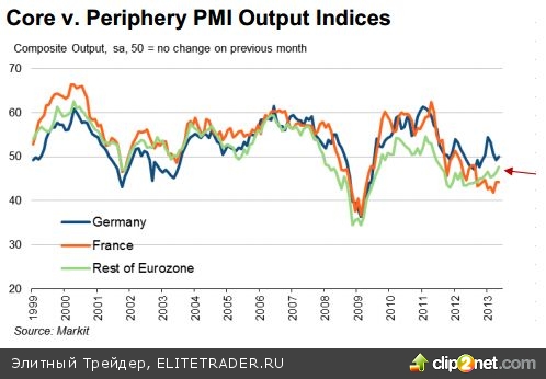Графики динамики индекса PMI в Германии, Франции и других странах еврозоны
