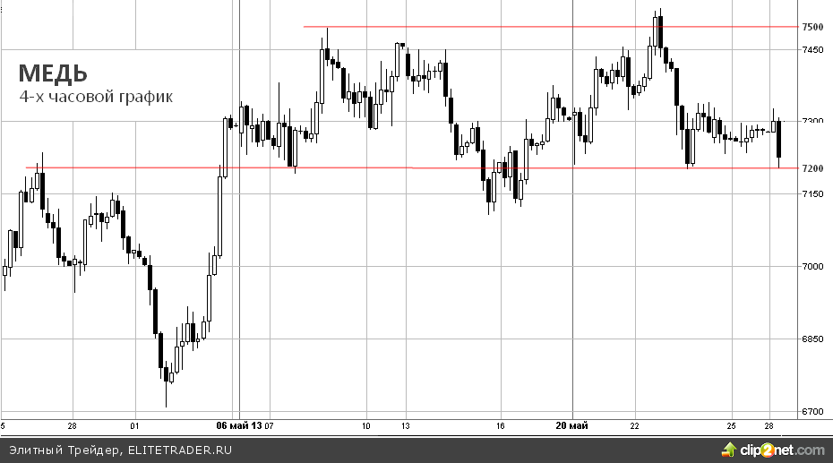 На 4-х часовом графике меди мы видим образование бокового канала после умеренного роста. Пока спекулянтов устраивает еткущая ситуация, однако любой фундаментальный повод способен вывести цены из довольно шаткого равновесия. Также можно сказать и о том, что остановка работы медной шахты в Индонезии стало лишь временным фактором роста, для более сильного движения этого явно не достаточно.