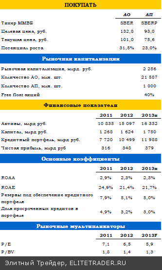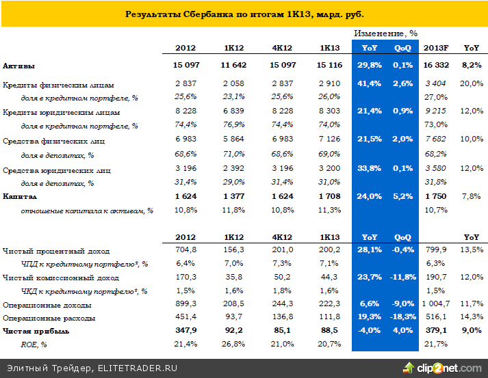 Среди положительных моментов – Сбербанку удалось остановить бегство корпоративных вкладчиков, и в 2К13 ситуация еще улучшится благодаря длинным праздникам. Однако, в то же время, майские праздники оставляют мало пространства для существенного роста кредитного портфеля.