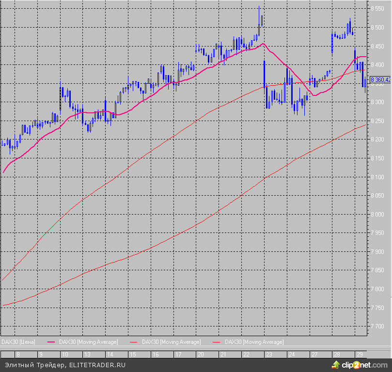 Негативная динамика немецкого индекса DAX проявилась сразу на открытии, когда он просел с «гэпом» с 8480 до 8440 пунктов, а после этого просел до отметки 8340 пунктов, которая стала преградой для «медведей».