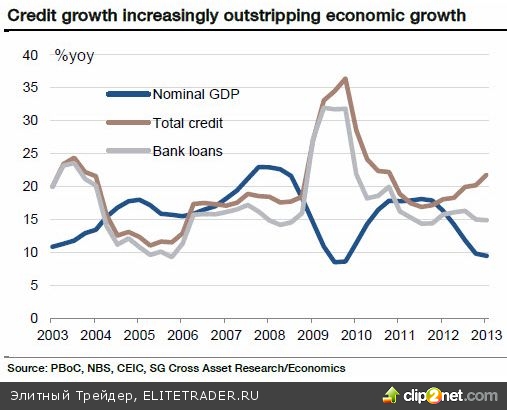 Рост темпов кредитного обременения корпоративного сектора Китая существенно превышает темпы экономического роста страны уже пять кварталов подряд, как подсчитали эксперты Societe General