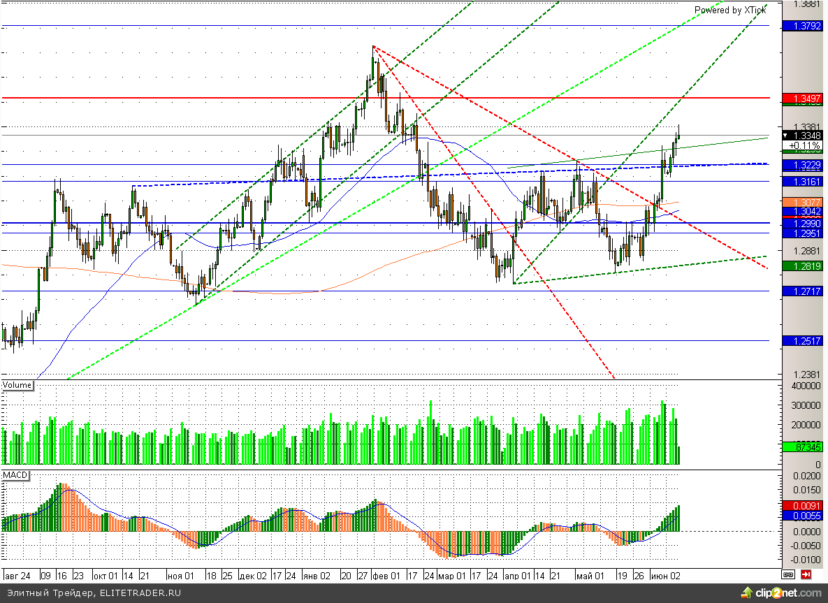 Евро прибавляет к доллару 0,08%. Европейская валюта еще во вторник преодолела отметку 1,33 и начала реализацию формации «двойное дно». Теперь рост данной валютной пары может быть продолжен вплоть до отметки 1,35, где ее поджидает первое серьезное сопротивление. Факторами, способствующими данному укреплению, может стать постепенное улучшение экономических показателей еврозоны, а также отсутствие мер по сворачиванию стимулирующих программ на ближайшем заседании ФРС.