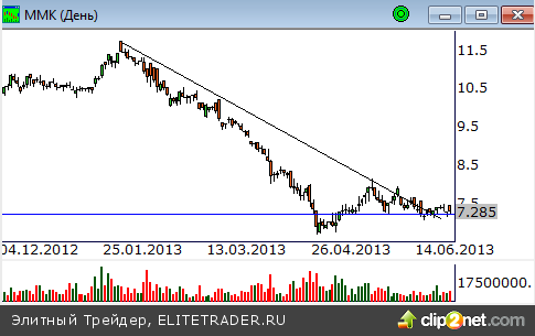 Зимний нисходящий тренд завершен. Цены перешли к стадии консолидации вблизи горизонтального уровня спроса, расположенного у отметки 7.20. Снижение широкого рынка здесь также не вызывает агрессивных продаж, какие были ранее в тренде. Таким образом, есть технические основания полагать, что уровни вблизи отметки 6.70 останутся за покупателями. Диапазон 6.70-7.20 в дальнейшем может стать началом определенного восстановления цен.