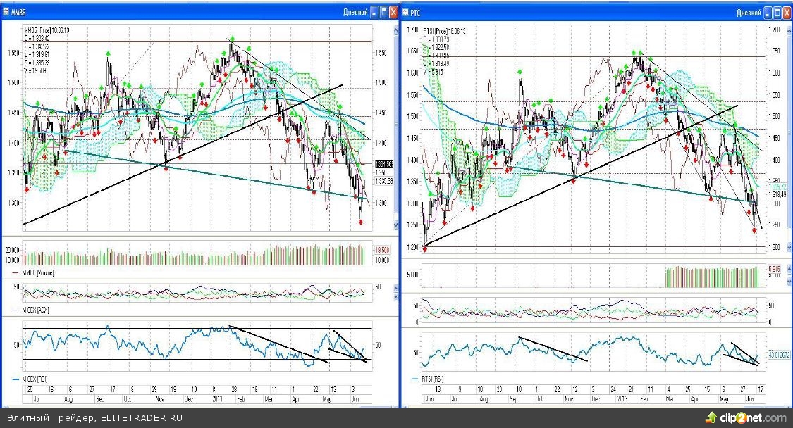 Я неслучайно обращаю внимание игроков на данный факт. Если посмотреть на дневной график индекса ММВБ, то можно заметить, что чаще всего данная ЕМА не пробивалась с первого раза, при её достижении всегда следовал некоторый откат котировок назад. Так что вполне возможно, что катализатором пробоя ЕМА21 наверх может стать само заседание ФРС в случае если игроки услышат то, что хотят услышать. Хотя это же событие может стать катализатором совсем другого движения, в случае если опасения, связанные со сворачиванием стимулирующих мер, подтвердятся.