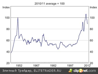 Ухудшение внешней торговли в связи с сильной национальной денежной единицей усугубляется слабостью товарного рынка, цены на активы которого долгое время поддерживали курс австралийского доллара на уровне выше паритета с американской валютой. В этой области пара AUD/USD находилась с середины июня прошлого года по май нынешнего, что является самым длительным периодом с 1983-го, когда Австралия перешла к плавающим валютным курсам. Логично предположить, что «австралиец» не сможет вернуть себе утраченные позиции, пока товарный рынок не начнет восстанавливаться.