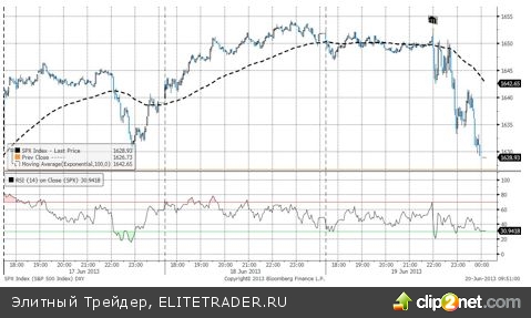 В четверг 20 июня 2013 года отечественные площадки открылись снижением. Глава ФРС дал понять инвесторам, что программа количественного смягчения с высокой вероятностью будет сокращаться уже в текущем году. По состоянию на 10.00 мск цена на нефть марки Brent снижается на 1.5% и составляет $104 за баррель. Газпром, однозначно, идет к 100 рублям, мечты сбываются.