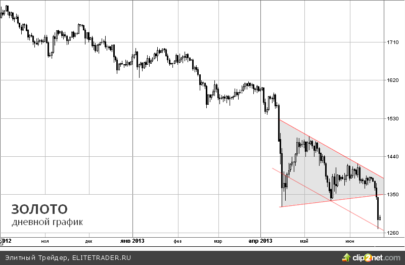 Четверг закончился сильным провалом на графиках золота и серебра, оба металла подешевели до минимумов за последние 2 с половиной года. Причиной распродаж стали слова главы ФРС Бен Бернанке днем ранее о готовности банка начать QE Exit уже в этом году.