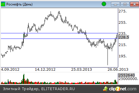 Цены достигли отметки 235 рублей, в районе которой проходит значимый уровень предложения. Здесь покупатели решили зафиксировать часть позиций, что стало причиной отката от данного уровня вниз. На текущий момент отметка 225 рублей выступает поддержкой. Мы полагаем, что в ближайшей перспективе котировки будут консолидироваться в диапазоне 225-235 рублей. Преоление отметки 235 даст толчок к продолжению текущего движения на север.
