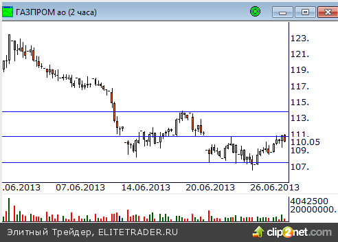 Цены продолжают консолидироваться в рамках бокового канала. Осевая линия в районе отметки 111 рублей вчера вторично стала преградой для роста. Таким образом, откат от него вниз может вернуть цены к отметке 109 рублей, где расположен ближайший уровень спроса. После пробоя отметки 111 рублей котировки пойдут тестировать верхнюю границу боковика в район отметки 114 рублей.