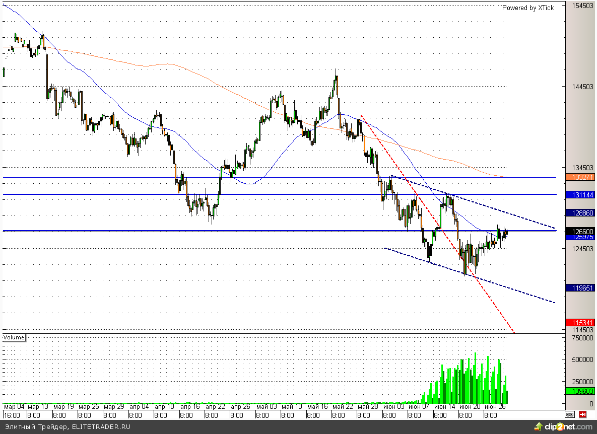 Фьючерс на индекс РТС сегодня, как и всю предыдущую неделю, продолжает двигаться в диапазоне между отметками 123000 и 127000. Выход из этого боковика может начать сильное движение, но участники пока не явно не торопят события. На прошлой неделе рекомендовал подумать об открытии длинных позиций, что в конечном итоге полностью оправдало себя (по факту с этого момента можно было заработать более 3%). Между тем ситуация сейчас выглядит крайне противоречивой, несмотря на позитивную статистику, мысли о сворачивании стимулирующих программ продолжают давить на участников.