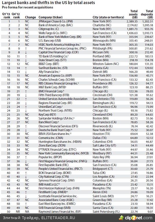 Крупнейшие банки Америки (1 квартал 2013 года):