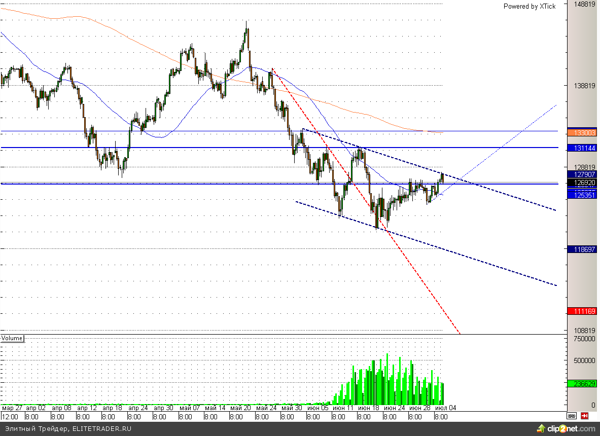 Таким образом, основные поводыри сейчас дают незначительный сигнал на продажу. При этом положительных фундаментальных факторов сейчас хватает, поэтому к открытию позиции надо отнестись с большой осторожностью. Закрывать короткую позицию оптимально после ухода выше 128500.