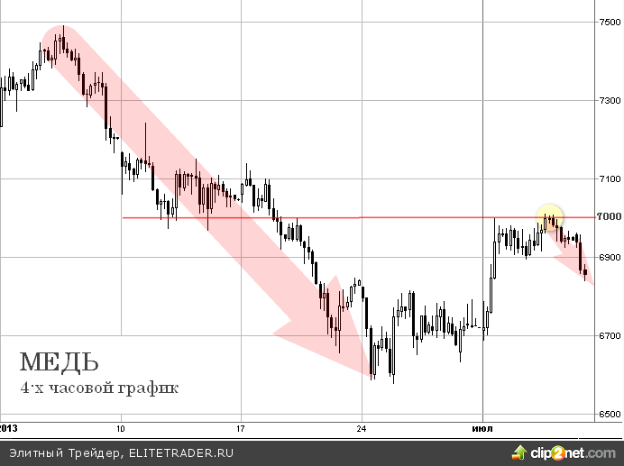 Медь дешевеет на торгах в среду 4 июля на фоне опасений относительно замедления темпов роста китайской экономики. Локальный отскок наверх остановился перед сопротивлением $7000 за тонну, рынок ожидает публикации отчетов с рынка труда США.