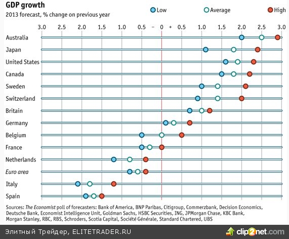 Диаграмма прогнозов по развитым экономикам на 2013 год