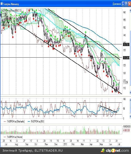 Уже в пятницу стоимость акций поднималась до уровня 115,46 рублей, отработав первую цель восхождения и те игроки, которые покупали акций «Газпрома» в зоне 106-107 рублей, могли там зафиксировать первую прибыль.