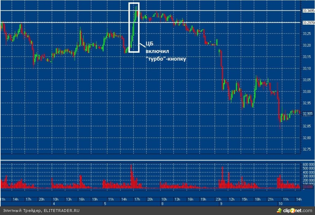 Утренним импульсом вторника медведи очень активно атаковали быков. Теперь тот импульс будет ватерлинией еще надолго. ЦБшные интервенции прошлой пятницы только усилили краткосрочный медвежий сантимент к доллару в данной паре. Однако тренд с феврале пока так и не сломлен. Кстати, как показывают данные 5 июля: ЦБ не просто работает от уровней бивалютной корзины, но и ловит моменты резкого всплеска к доллару, чтобы «нагрузить» спекулянтов. На тонком низкообъемном рынке ЦБ на тех же уровнях может умерить свой пыл (пример, понедельник, где интервенции вновь вернулись к уровням 4 июля).