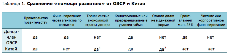 Примечания: 1 – проекты помощи облегчают экспорт природных ресурсов и сырья в Китай и используют китайские компании, материалы и рабочую силу.