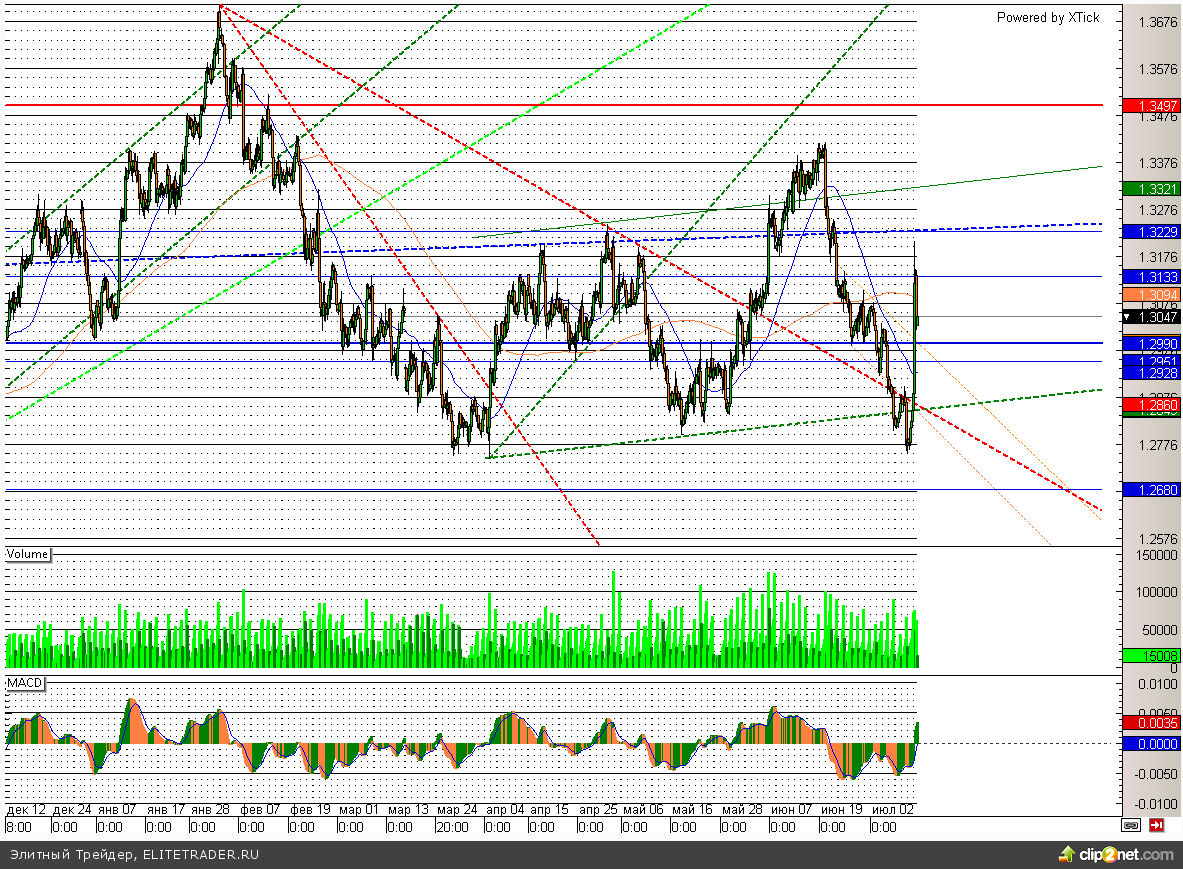 Евро прибавляет к доллару более 1,3%. Европейская валюта за 2 дня скорректировала более 50% от волны снижения, начавшейся во второй половине июня, и продолжает чувствовать себя очень уверенно. Ближайшее сопротивление по данной паре располагается в районе 1,323 и без дополнительных драйверов пробить его пока, скорее всего, не удастся. Поэтому от данного уровня можно смело пробовать открывать короткие позиции по паре
