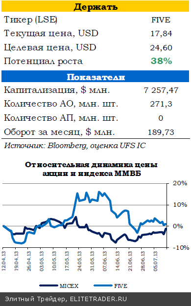 Отчетность немного хуже наших ожиданий (мы ждали роста выручки на 8%). В 2К13 компания продемонстрировала дальнейшее замедление роста (+8,1% в 1К13). LFL показатели по-прежнему слабые, и отставание Х5 от Магнита продолжает нарастать – в 2К13 сеть открыла меньше магазинов, чем Магнит только за июнь. По совокупной выручке Х5 однозначно лишилась первого места, и далее отставание будет только нарастать.