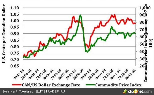 В целом динамика курса канадского доллара тесно коррелирует с Commodity Price Index, характеризующим состояние товарного рынка.