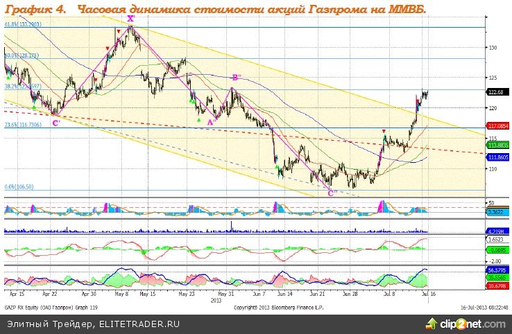 Газпром – преодолел верхнюю границу нисходящего канала, после коррекционного снижения высока вероятность продолжения роста. MACD сформировал сигнал вниз. ADX указывает на замедление восходящего тренда. Индикатор, основанный на динамике ADX, 12 июля сформировал сигнал вниз. Сопротивление: 119.00. Поддержка: 123,00. Рекомендация: Покупать от уровня 117 руб.